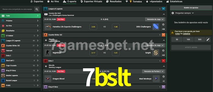 O 7bslt oferece uma grande seleção de opções de apostas em e-sports com probabilidades competitivas